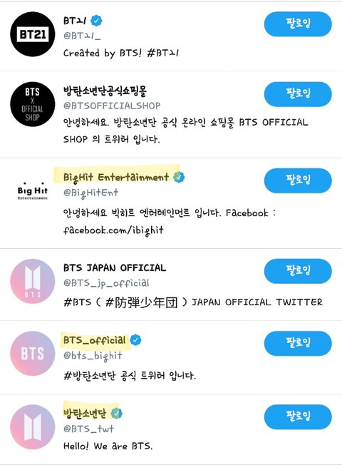 형광펜 그어져 있는 계정은 알림설정 해두기