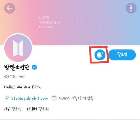 알림설정하는 방법은 그 계정에 들어가서 아래사진에 있는 버튼 누른뒤 '모든 트윗'으로 설정해주기