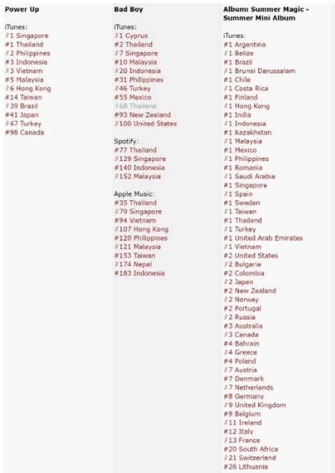 - Power Up, 중국 샤미뮤직 종합 차트 1위