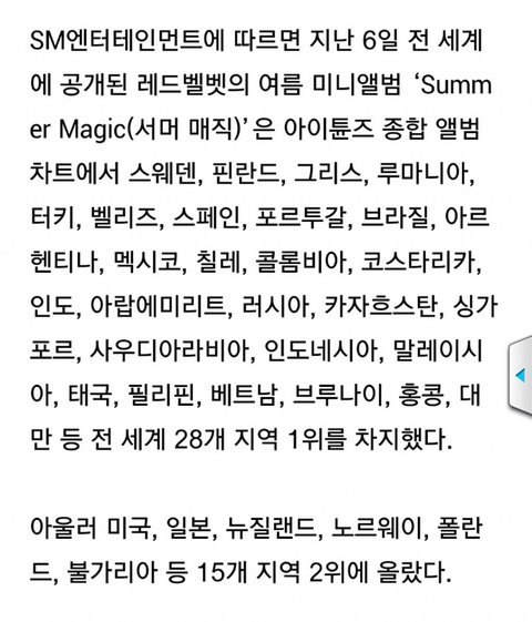 - 아이튠즈 월드 와이드 앨범 차트 1위