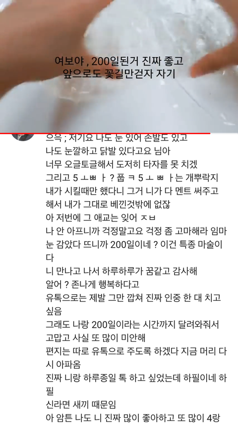 유튜브 커플 200일 기념 액괴 쪼물딱 영상 올린 남친/ 거기에 댓글단 달달함 따위 없는 박력 흡연 여친