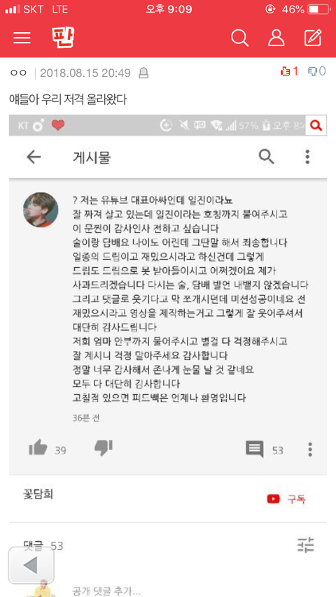 우리 저격영상 올라왔더ㅠㅠㅠ