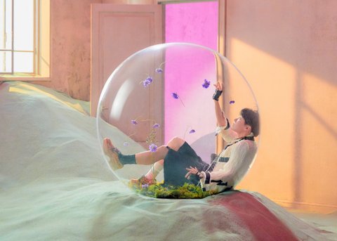 1 예쁜 모습으로 유리구슬에 들어가 있지만 밖은 황량(그동안 방탄 가사에 '사막'이 많이 등장했어서 쌓인 모래가 부정적 느낌으로 해석될 수 있음). 즉 아름다운 모습을 보여주고자 하지만 결국 제대로 봐 주는 사람은 없음. 척박한 곳에 고립된 자아들. 이건 다른컨포와 같은 맥락으로 이어짐