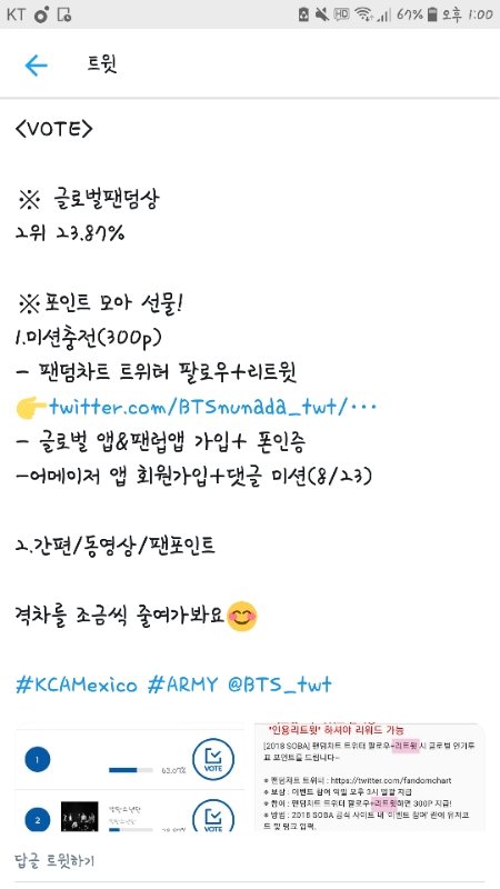 글로벌팬덤상도 도와주자!! 공지에 보면 포인트 보내는법 다 나와있더라 트윗링크 : https://twitter.com/BTSnunada_twt/status/1029577442451578882?s=19