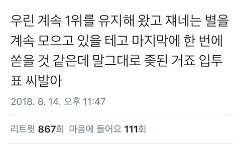 이거 보고 깜짝 놀람 애초에 하루에 80개 제한 투표라 별 모아도 쓸모 없는 건데; 너무 당당하게 말하고 아무도 정정 안 해주더라