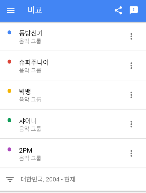 빅뱅>샤이니>2PM>동방신기>슈퍼주니어 순