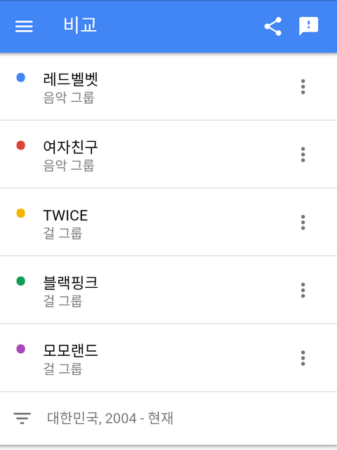 트와이스>레드벨벳>여자친구>블랙핑크>모모랜드 순