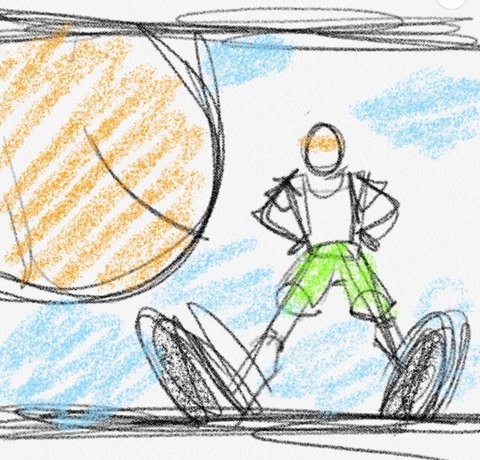 아래에서 위로 보는 앵글인데 파란하늘도 있고 제노가 막 농구공튀기면서 쎈척하는거 화면도 밟아주고 근데 내가그리니까 간지가 안남