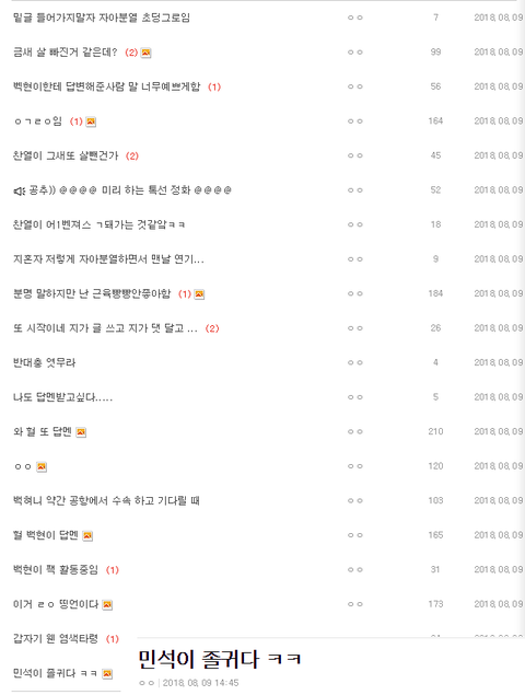 ㄴ2시 44분부터 9시 43분까지 7시간동안 10페이지 넘게 민석이 까글 도배(몇개는 삭튀)