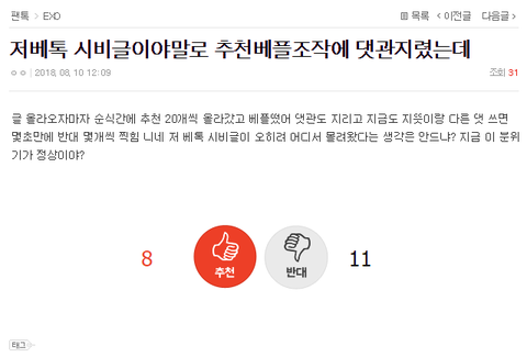 ㄴ조작이다 모는 글 올라오자마자 추천20조작+바로베댓 생성돼 베톡감과 동시에