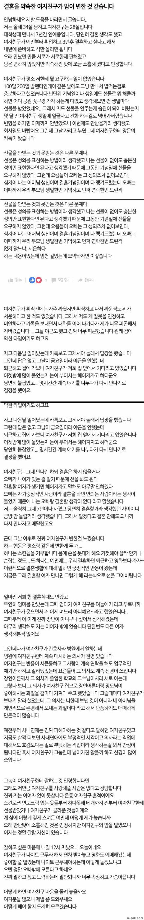 결혼을 약속한 여자친구의 변심