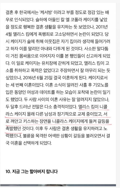 니콜라스 케이지가 한국인 아내와 헤어진 이유