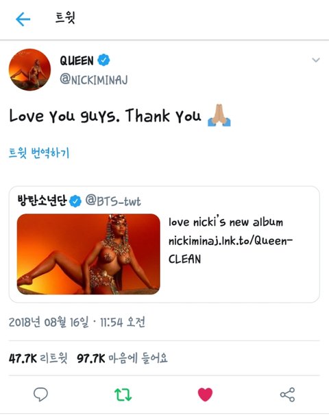 1. 방탄이 예전부터 너무 팬이였던 미국톱가수 니키미나즈의 신곡을 추천