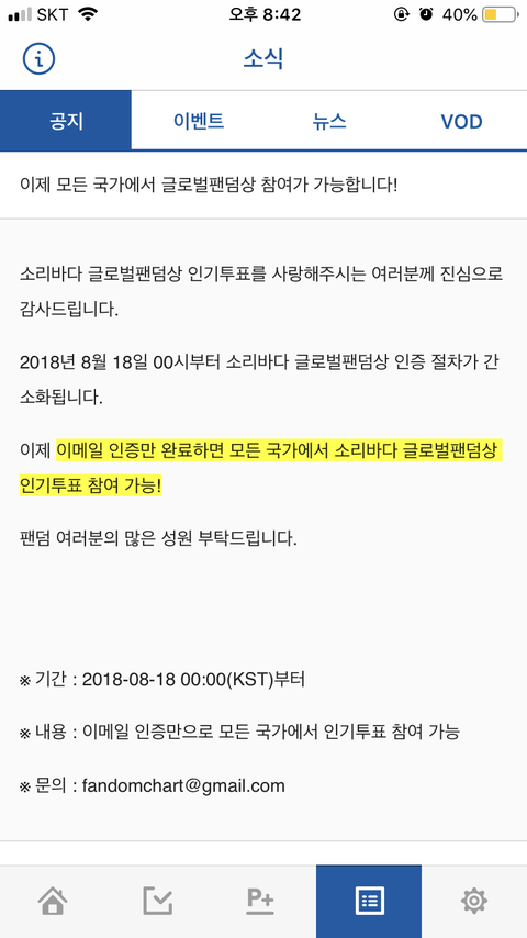 해외 팬만 참여 가능했던 글로벌 인기상이 모든 국가의 팬들 참여가 가능해짐 이메일 인증만으로 투표 가능 현재 60퍼 이상 점유율로 압도적으로 1위 중 다들 참여해
