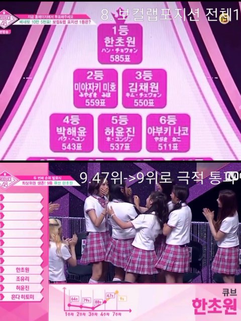 7. 팀 전원에게도 투표가능한 보컬&랩 포지션평가에서 전체1위 + 베네핏의 효과로 47위->9위로 수직상승