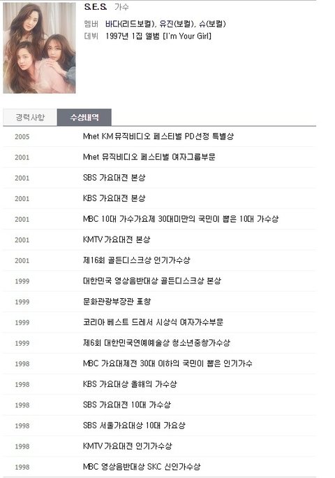 시대별 최고 인기 가수라 하면 당연히 떠오르는 " 대상 수상 " 하지만 SES와 유승준 이 둘은 대상을 받은 적이 없음.