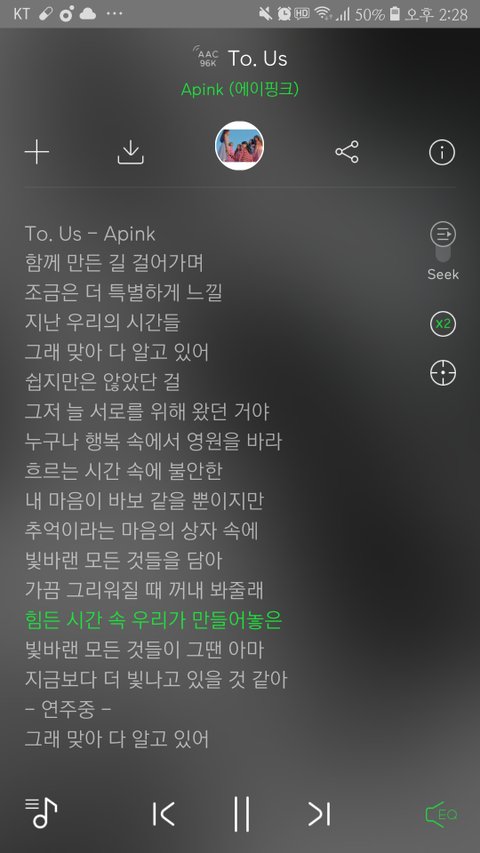은 에이핑크 박초롱이쓴 To.us라는 곡이야