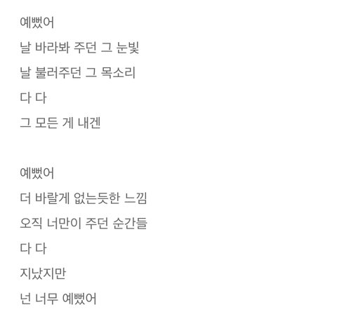 이젠 모두가 아는 그 명곡ㅠㅠ 이 예뻤어 가사도 영케이 단독인데 멜로디도 좋지만 모든 순간에 넌 너무 예뻤다고 말하는 가사도 명곡에 한몫함...