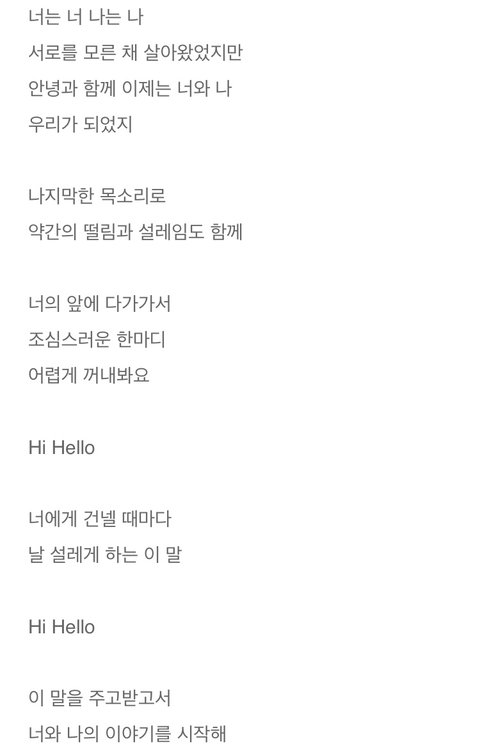 이 곡은 모르는 사람이 더 많을 텐데 데식 노래 최초로 사랑이 이루어진 곡임... 안녕과 함께 하나가 되었다, 우리가 되었다 하는 표현력이 정말 예쁘게 돋보이는 곡