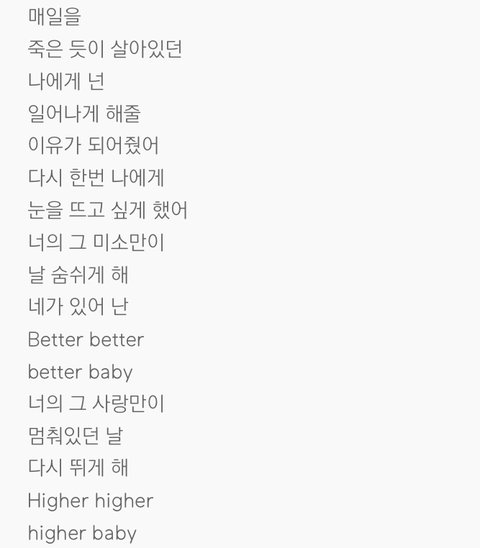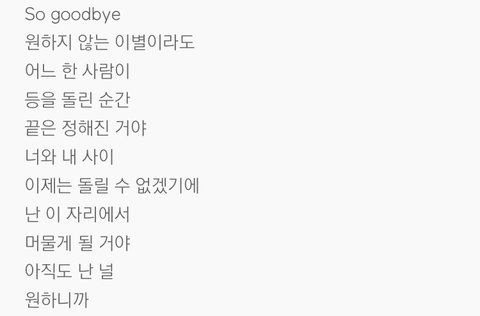 이번 앨범에서 제일 좋아하는 가사ㅠㅠ 너무 현실적이고 슬픈데 그만큼 표현이 정말 잘 된 곡임. 아련하고 슬프고 현실적이고 뭐 이런... 가사가 정말 슬픔ㅠㅠㅠ