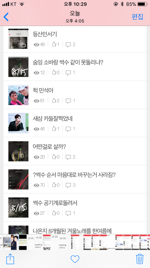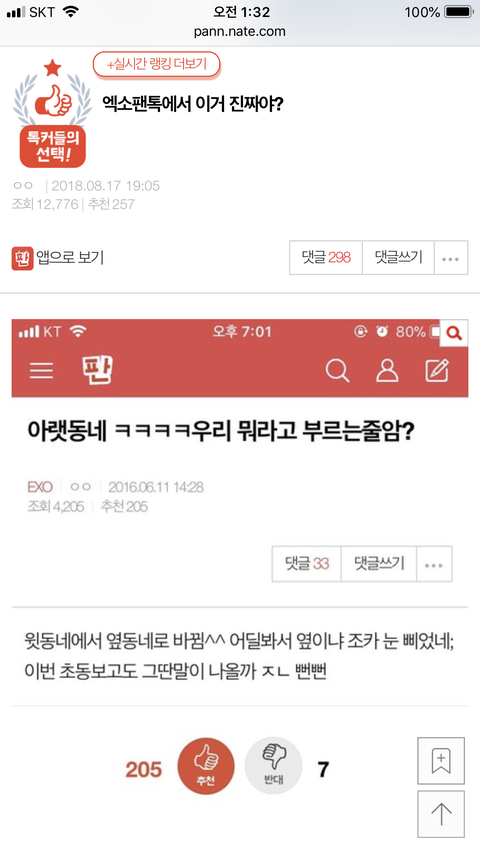 며칠전 민석이글로 난리쳤던 걔 상단바랑 조금 다르긴한데 뭔가 글쓰는게 비슷해 그때는 올팬강조하더니 오늘은 개념팬강조하질않나 크트 아이폰이 걔만 있는건 아니겠지만 이런걸 미리 캡쳐해서 모아뒀다 어그로 끄는게 왠지 동일인같음