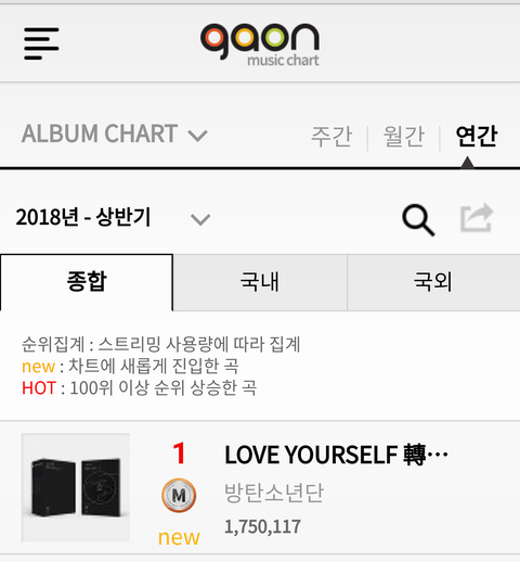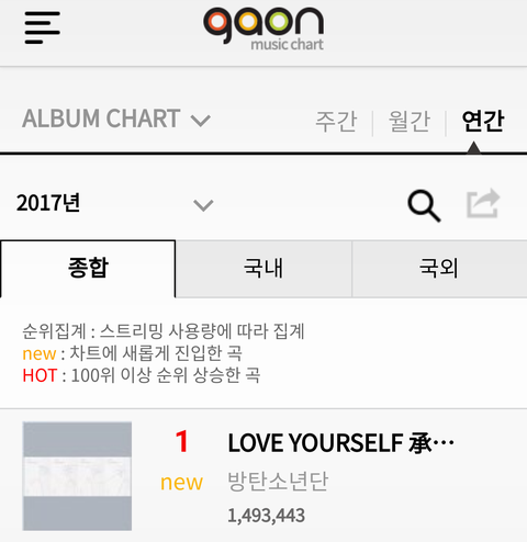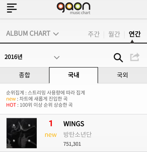 1년 뒤인 2016년엔 연간 음반 차트 1위를