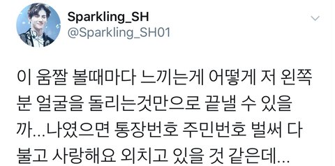 나였으면 통장번호 주민번호 다 부르고 사랑해요 하트뿅뿅 쏴주는걸로 모자라 잘생쁨한 얼굴 조물조물 시도라도 해보고 매니저한테 끌려갈텐데ㅠㅠㅠㅠㅠㅠㅠㅠㅠㅠ