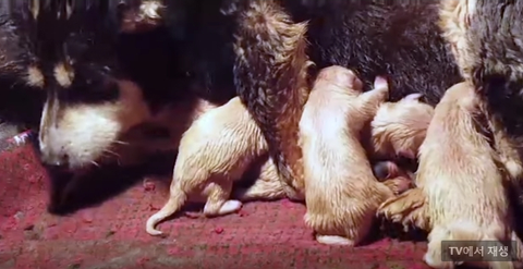 풍산개의 방금 출산한 귀여운 강아지들입니다