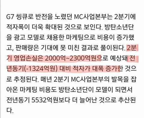 LG 내부측에서는 도대체 왜 인지도없는 방탄소년단을 모델로 뽑았는지 비난중이라고함.