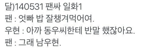이거 나중에 김성규가 '가족이 이러는거 알아요?' 이랬대ㅋㅋㅋㅋㅋㅋㅋㅋㅋㅋ
