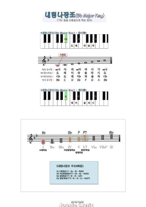 Bb(내림나장조)가 마이너키로는 Gm(사단조)야