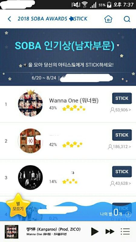 우리원 지금 현재 1등이야 !!!!~~~~ ♡♡ 기분너무좋다 그래도 방심하지말고 계속 투표하는거알지 ???? 6일남았어 우리 워너원 상받게해주자 너브리들화이팅 ~~