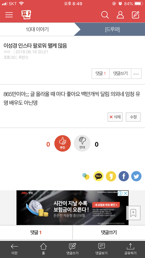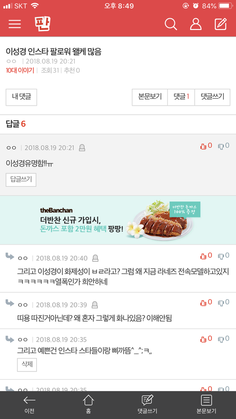 댓글 많은 톡