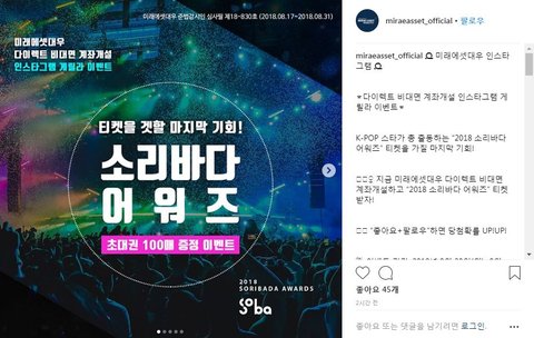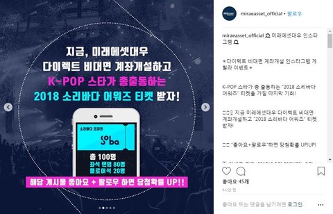 공카 갔다가 이벤트 소식이 있길래알려주러왔어!!!! 보니까 20살 이상이면 이벤트 참여할 수 있어https://www.instagram.com/p/Bmrdw3mnGwD/?taken-by=miraeasset_official