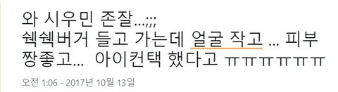 작년 시우민을 쉑쉑버거매장에서 발견한 분의 트윗 여기서 밑줄 그인 얼굴작고에 주목하시고