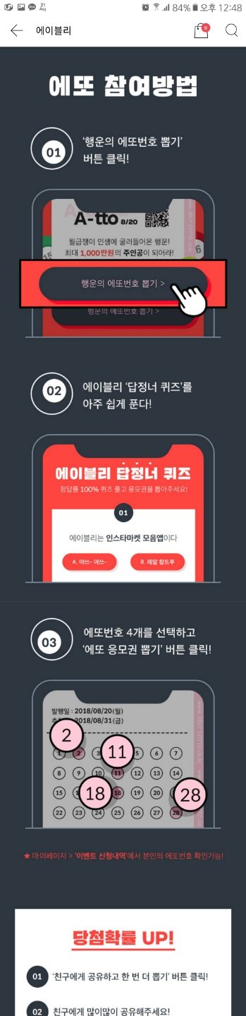 제가 자주 쓰는 쇼핑앱인데 특이하게 로또이벤트를 하더라구요!!이벤트 추천 한 번 해봐요 ㅎㅎ저는 벌써 두번 응모권 다 뽑았고요..ㅋㅋ