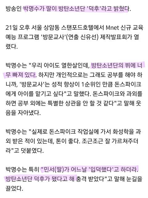 박1명수님 딸 민서양 아미 덕밍아웃 ㅋㅋㅋㅋ