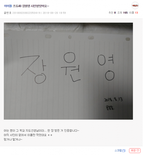 프로듀스48 장원영 싸인 인증