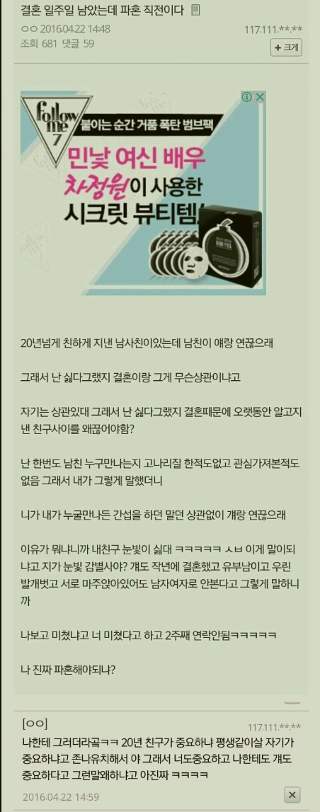 곧 결혼 예정인데 잦은 싸움에 파혼예정입니다.