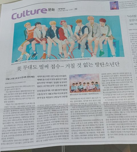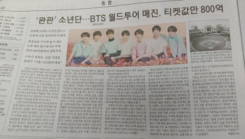 오늘자 매경, 세계일보에 등장한 완판소년단