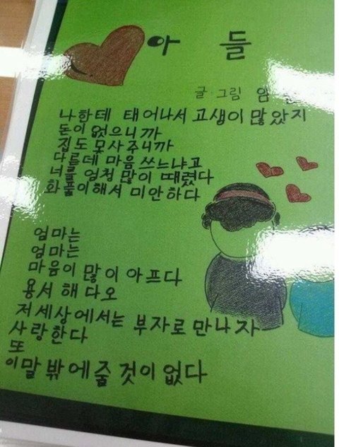 한글을 배우신 할머니께서 처음으로 아들에게 쓴 시