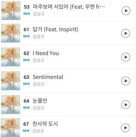 + 김성규 라이브 음원 21곡 중 18곡 차트인 ㅠㅠㅠㅠㅠㅠㅠㅠ