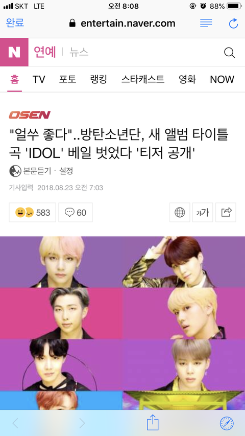 https://m.entertain.naver.com/read?oid=109&aid=0003849021 좋아요 , 댓글(방탄소년단 혹은 BTS 풀네임) 이삐들 얼쑤 ~!