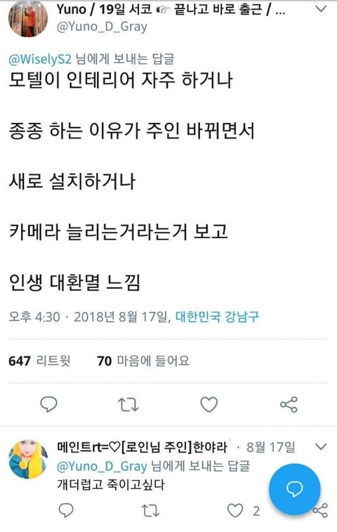 인테리어 자주바뀌는 모텔 조심하라는 트페미 언냐