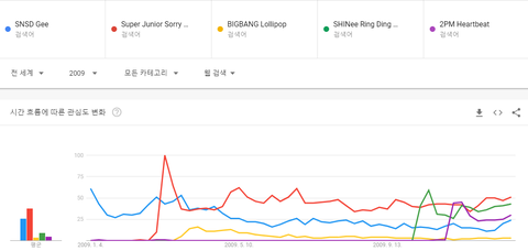 슈퍼주니어 쏘리 쏘리 > 소녀시대 Gee > 샤이니 링딩동 > 빅뱅 롤리팝 > 2PM 하트비트