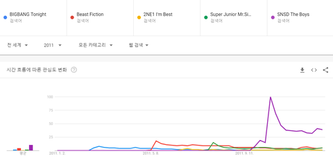소녀시대 더 보이즈 > 비스트 픽션 > 슈퍼주니어 미스터 심플 > 빅뱅 투나잇 > 2NE1 내가 제일 잘나가