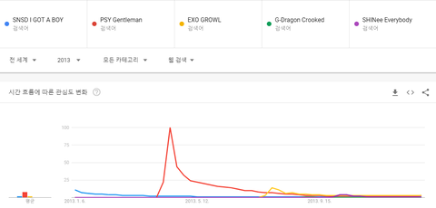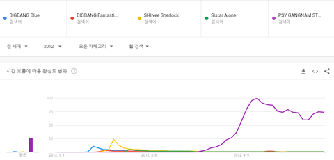 싸이 강남스타일 > 샤이니 셜록 > 빅뱅 블루 > 빅뱅 판타스틱 베이비 > 씨스타 나혼자
