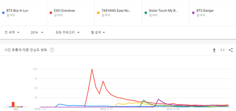 엑소 중독 > 태양 눈 코 입 > 방탄소년단 Danger > 씨스타 터치 마이 바디 > 방탄소년단 상남자