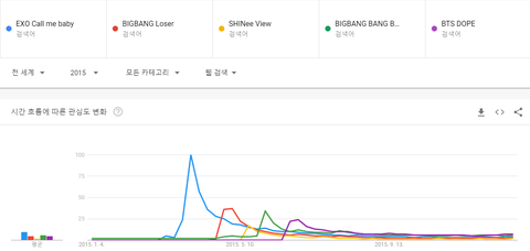 엑소 콜미 베이비 > 빅뱅 뱅뱅뱅 > 빅뱅 루저 > 방탄소년단 쩔어 > 샤이니 뷰