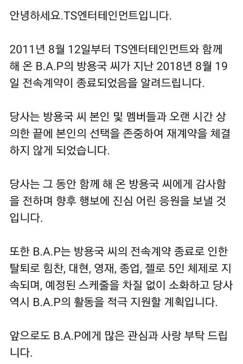 활동을 먼저 시작해서 계약이 먼저 끝난거지 해체되거나 그런거 아니니까 다들 비에이피 잊지말고 항상 기억해줬으면 좋겠다